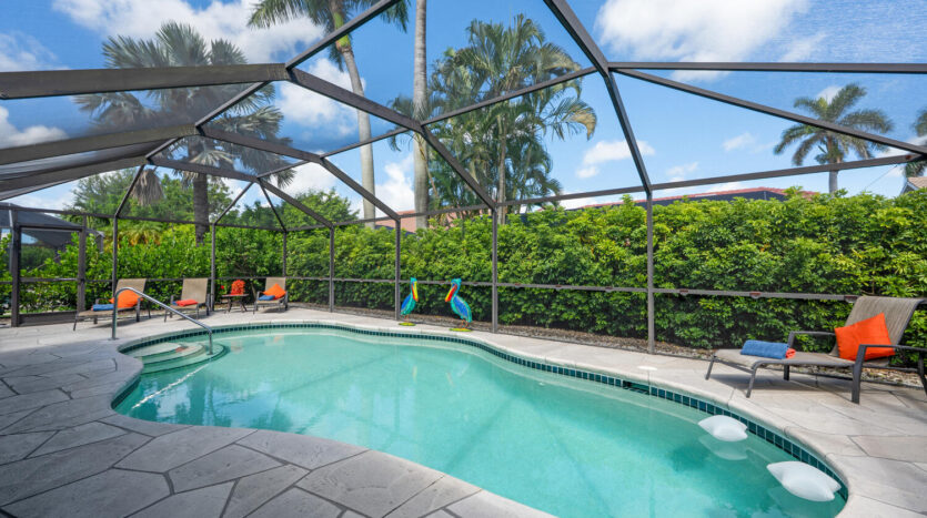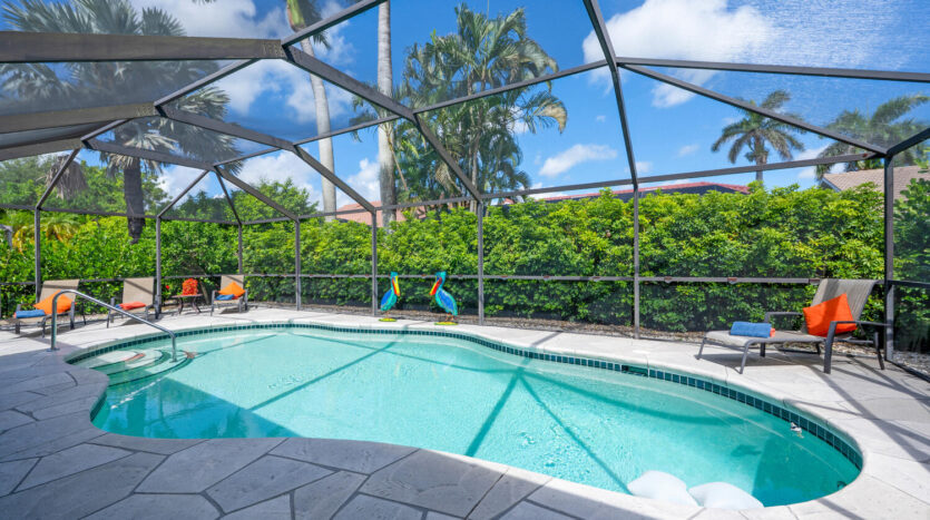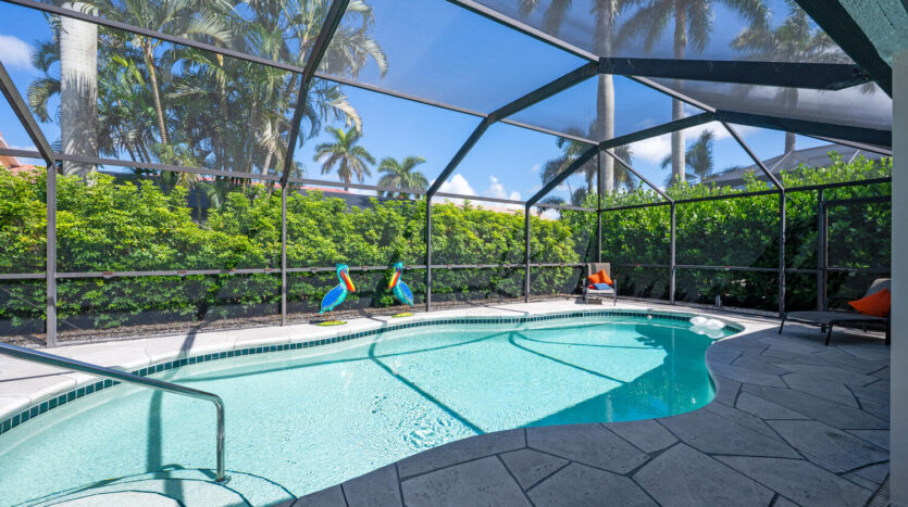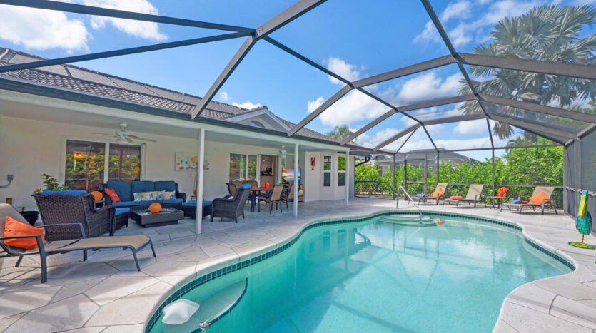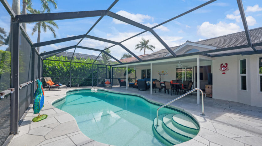 The time is now to make this single family residence your new abode! It can be your year round residence, winter home, or make it an investment property as it is currently. This home has everything conveniently located and shows well. There are three bedrooms, two bathrooms, formal dining area and a comfortable living area to relax in. The kitchen area features ample newer cabinetry, appliances, granite countertop with a breakfast bar for two. All windows and patio doors have been updated to impact glass for hurricane protection. The patio area is set up for socializing, dining, swimming, sun bathing, in an area lush with greenery around the pool cage. The primary bedroom is set back by the pool with its own bathroom and walk in closets. This well-maintained home is in the best private member owned golf community in the vicinity. The clubhouse just reopened with the most attractive lounge, dining areas, in addition to outdoor dining and firepit areas. The outdoor pool cafe/bar and resort pool are now open. By late December there will be pickleball courts added by the tennis and bocce courts. For the golfers there is a putting green, driving range, and of course the 18-hole golf course along with various leagues you as a golf member can join. This course went through an update in 2019 and is enjoyed by everyone! Don’t want to forget the city amenities which are extensive, theaters, playhouses, restaurants, and the beautiful Gulf of Mexico!! The Buyer assumes the assessment going forward for the resort pool, outdoor dining amongst other enhancements at $293.85 per quarter until 5/1/2033. This renovation was extensive and took approximately 2 years. We are all so grateful the construction days are behind us, and we get to return to indoor club dining and holidays celebrated with our neighbors and friends.