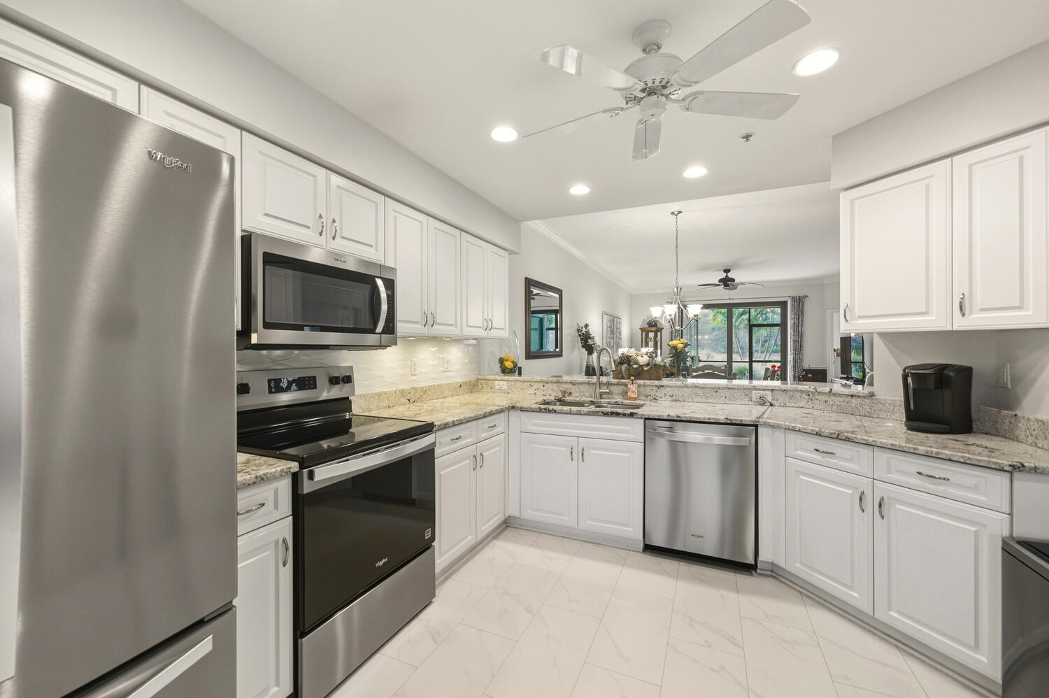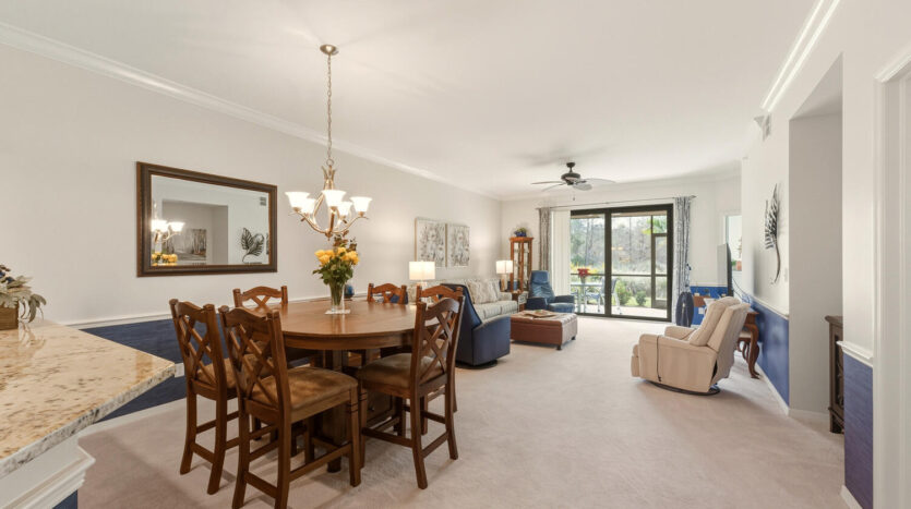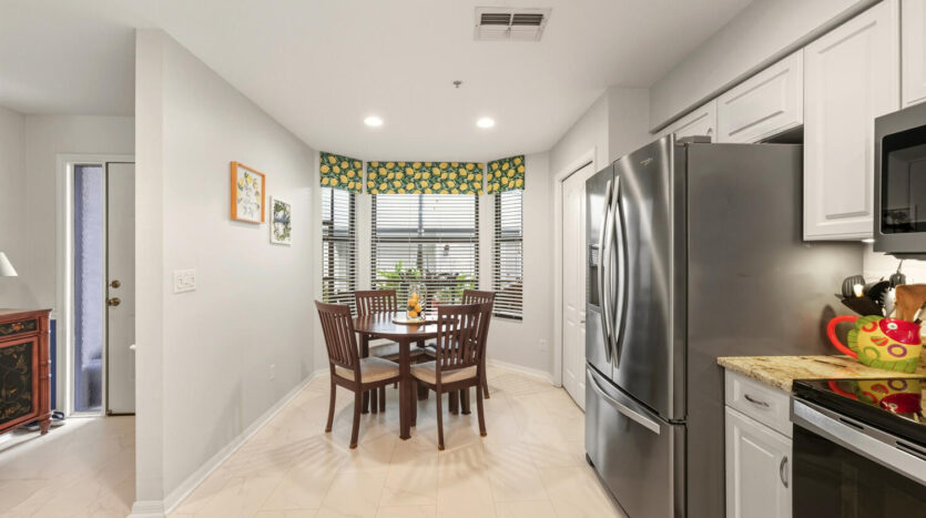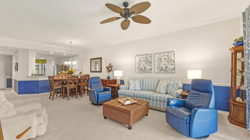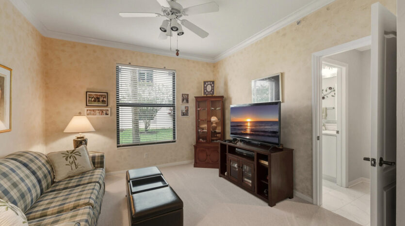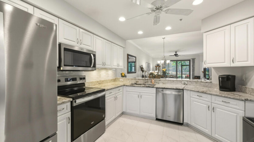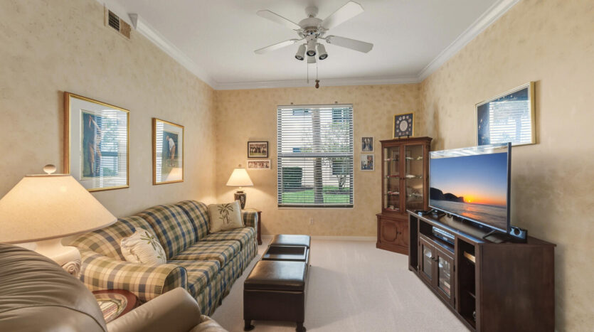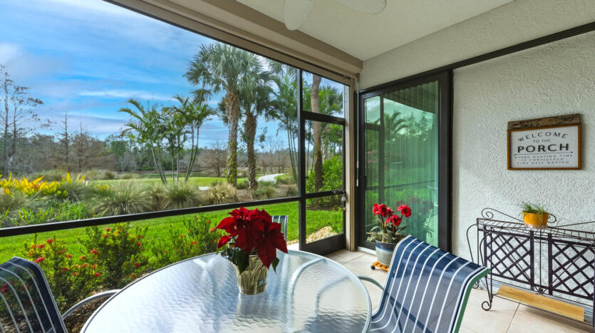 Fabulous first floor Abbey veranda end unit in one of Naples premier bundled golf communities Naples Heritage. This highly sought after Abbey model with two bedrooms two bathrooms and larger den featuring extra windows has 1660 square feet of sunlight living space. Tastefully appointed, meticulously maintained, and sure to please any Buyer. Upgraded kitchen including raised panel cabinets, granite countertops and upgraded stainless steel appliances perfect for entertaining. Wainscotting throughout the living areas. Crown molding in living areas. Recently renovated all new hurricane impact windows and sliders as well as screen cages on front and back lanais. Bathrooms are completely updated and the master bath has an enlarged shower. Just a short jaunt to the clubhouse, golf, fitness and facilities on a private street. Come see what they are all talking about in one of Naples premier bundled communities Naples Heritage with it’s 18 hole championship golf course, clubhouse with indoor and outdoor dining, fitness center with classes, tennis complex, resort style lap pool with bar area and outdoor dining, and a brand new pickleball and bocce ball complex coming in 2026. Naples Heritage is one of the lowest density golf course communities in Naples with 252 acres of lakes and preserves. All of this and so close to downtown Naples, Fifth Avenue and the beaches. Fitness center in the morning, followed by a round of golf before heading to the Naples beaches for the majestic sunsets. You have earned the Naples lifestyle and now is the time to enjoy it in this beautiful property in fabulous Naples Heritage.